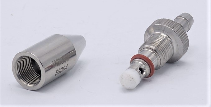 - Matériau: tête de soupape en acier inoxydable 1.4301 (AISI 304), corps de soupape en acier inoxydable 1.4301 (AISI 304), matériau de joint torique marron silicone, joint conique en téflon