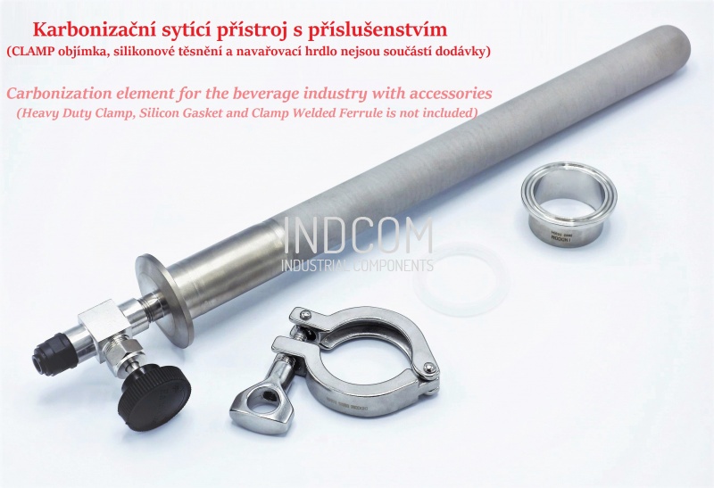 Généralement, l'élément de carbonisation est utilisé pour la saturation de la boisson finie (bière, limonade, cidre) à l'intérieur du réservoir sous pression avec de l'air stérile, du CO2 ou de l'azote. Grâce à sa conception, vous pouvez obtenir une bulle très délicate et des boissons saturées en plus à une température et une pression données. L'élément de carbonisation peut également être utilisé pour saturer le moût refroidi avant la fermentation dans des cuves de fermentation de bière (CCT).