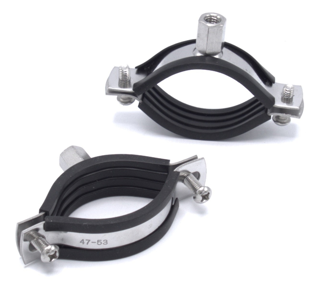Collier de serrage avec insert en caoutchouc EPDM, double vis, acier inoxydable DIN 1.4301, M8