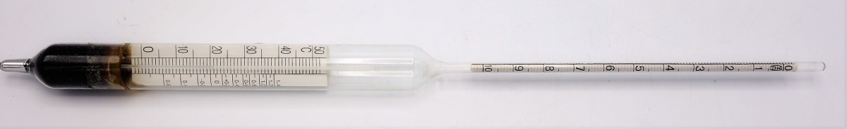 Dans la partie supérieure il y a une échelle de 0 % à 10 % ou 10 % à 20 %. Une divison Divison d'échelle est 0,1 %. Un compteur de sucre est placé dans le liquide et immergé spontanément (il est conseillé d'utiliser un cylindre de mesure avec un échantillon liquide). Sur la échelle nous lisons combien du sucre en % un liquide a.