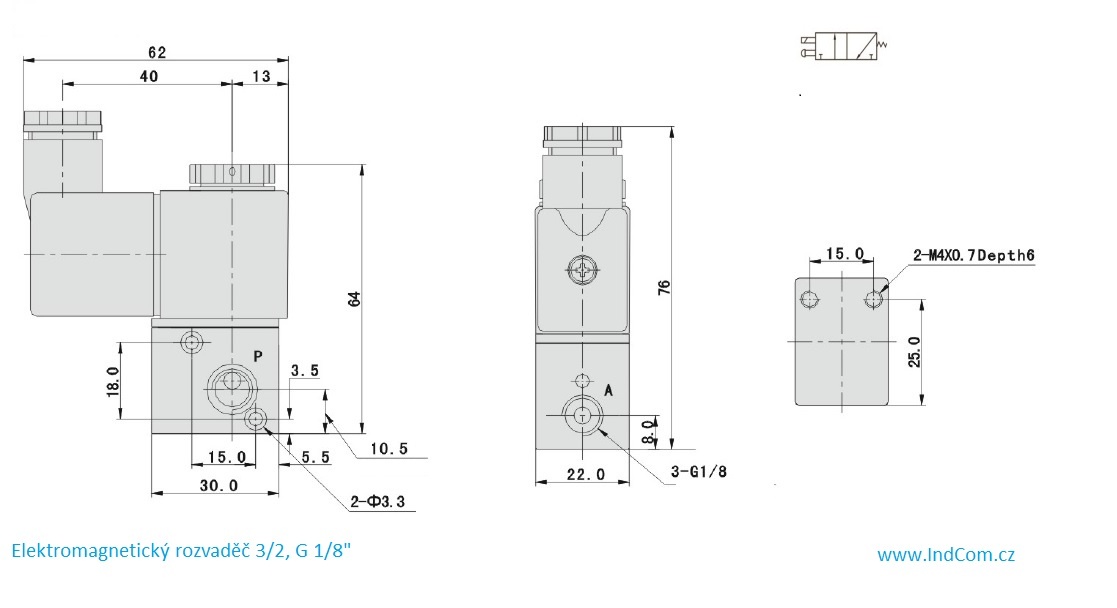 Distributeurs électromagnétiques 3/2, G 1/8", AC230V