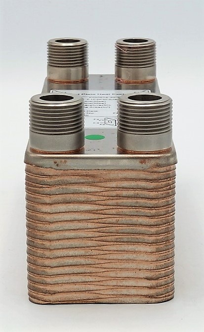 Échangeurs de chaleur à plaques comprennent appuyé sur l'épaisseur de la tôle.0.3 mm en acier inoxydable AISI316L. Conduits entre les plaques circule le fluide caloporteur. Chacune des plaques est environné le moyen principal d'un côté et le vecteur secondaire de l'autre côté, dans ce processus, l'échange de chaleur a lieu. Les planches sont autour du périmètre et dans l'ensemble des lieux avec le côté de la plaque reliés les uns aux autres par de cuivre de soudure (cuivre 99%).
