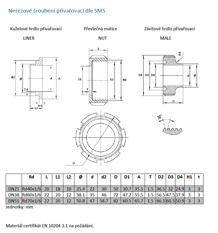 Écrou en acier inoxydable SMS