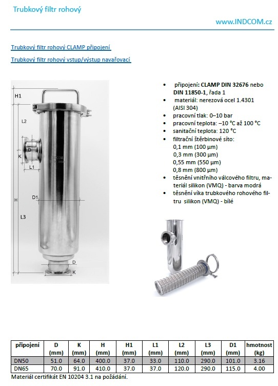 Filtre tubulaire – filtre à moût, raccordement: CLAMP DN50 (collier clamp 64mm)