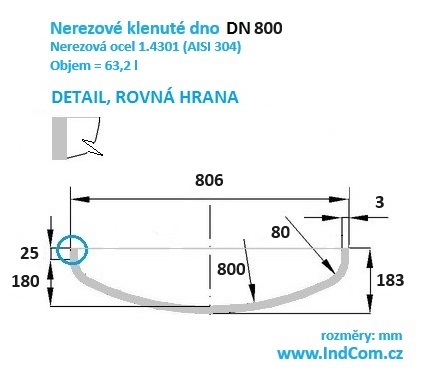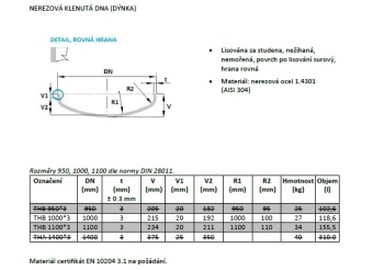 Klenutá dna (dýnka) z nerezové oceli 1.4301 (AISI 304).