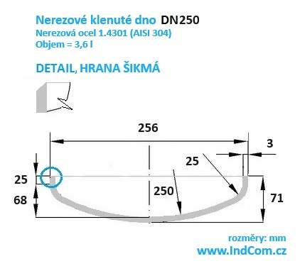 Klenutá dna (dýnka) z nerezového oceli 1.4301 (AISI 304).