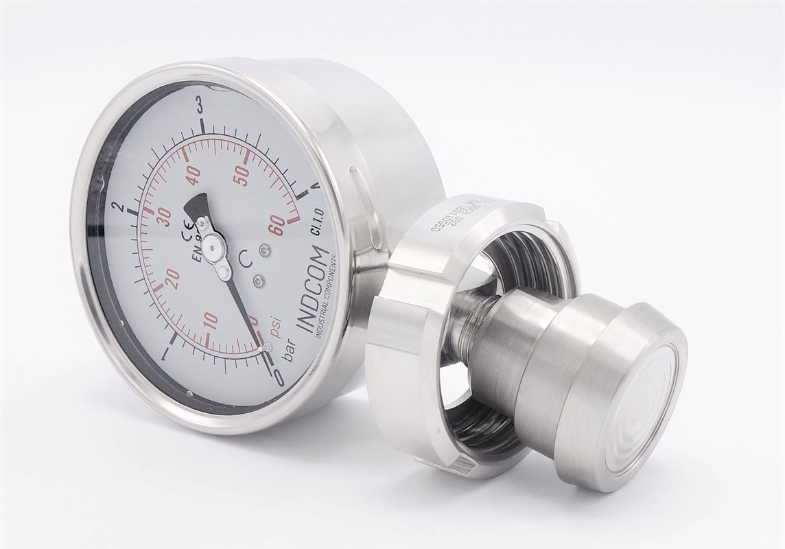 Manomètre à membrane séparatrice, raccord alimentaire DIN 11851, cadran 100 mm, écrou DN40 | 0-16 bar