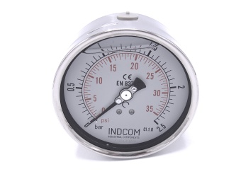 - Manomètre de pression est fabriqué en acier inoxydable matériau du boîtier: acier inoxydable AISI 304, matériau du fil AISI 316. Le dispositif de détection est un Bourdon ressort en acier inoxydable.