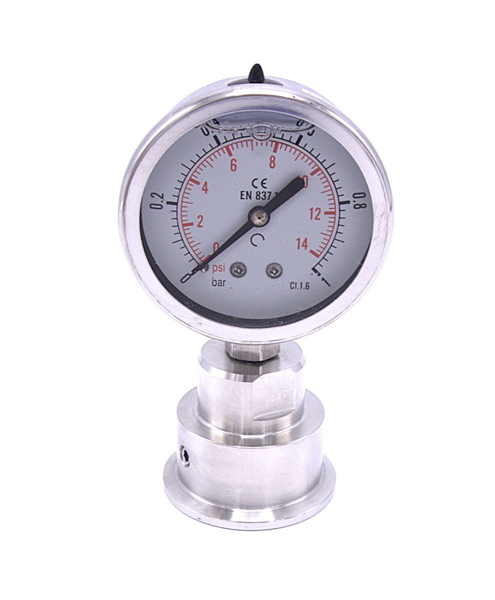 Manomètre avec séparateur à membrane - en acier inoxydable CLAMP, cadran 63 mm | 0-1 bar, (clamp-50,5mm)