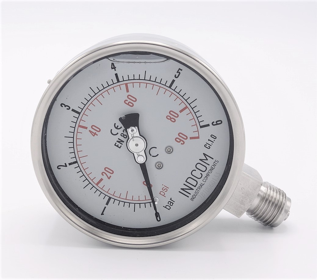 - La jauge de pression est fabriqué en acier inoxydable matériau du boîtier: acier inoxydable AISI 304, matériau du fil AISI 316. Le dispositif de détection est un Bourdon ressort en acier inoxydable.