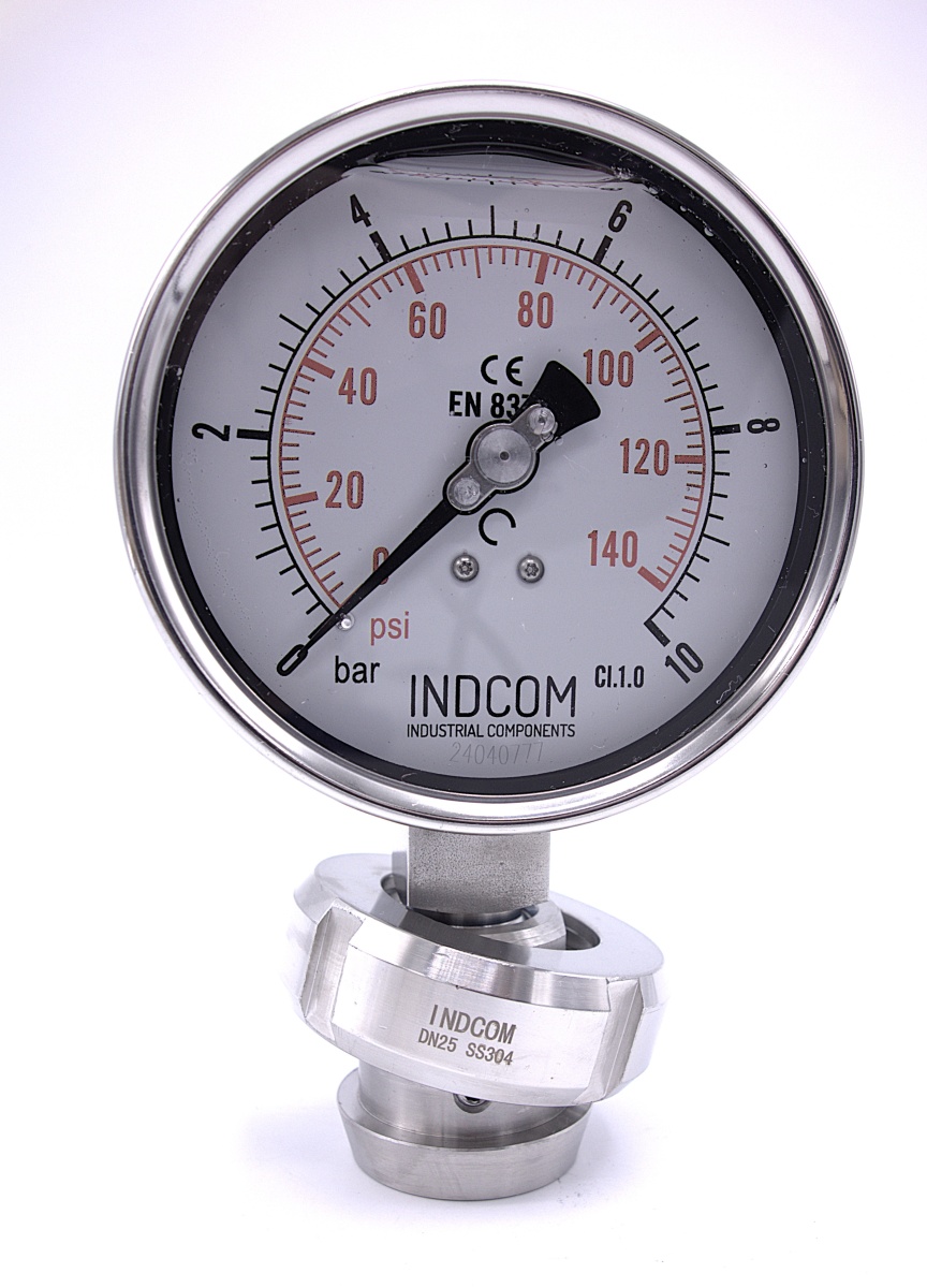 Manomètre avec séparateur à membrane, filetage alimentaire DIN 11851, cadran 100 mm, écrou DN25