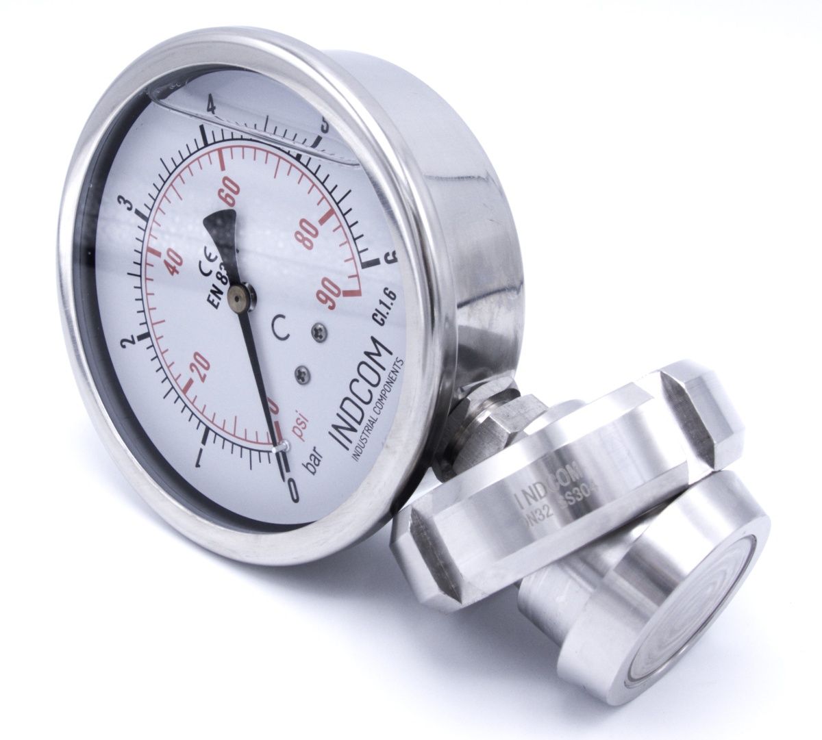 Manomètre avec séparateur à membrane - visserie alimentaire DIN 11851, cadran 100 mm, matrice DN32