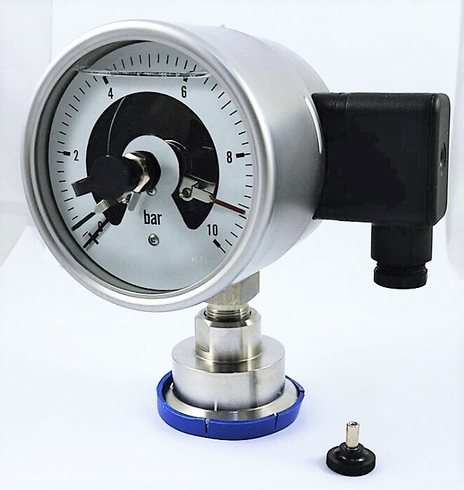Manomètre avec séparateur à membrane et contacts électriques en acier inox-clamp, cadran 100 mm