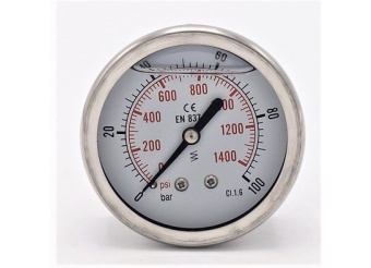 - Manomètre de pression est fabriqué en acier inoxydable matériau du boîtier: acier inoxydable 1.4301 (AISI 304), matériau du filetage 1.4401 (AISI 316). Le dispositif de détection est un Bourdon ressort en acier inoxydable.