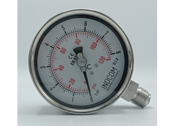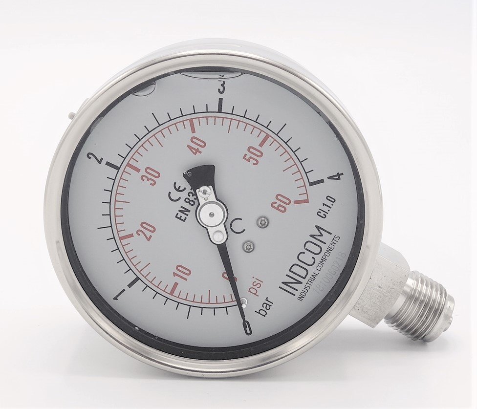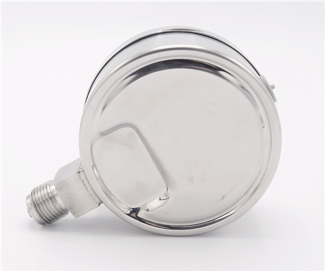 • Manomètre de pression est fabriqué en acier inoxydable matériau du boîtier: acier inoxydable AISI 304, matériau du fil AISI 316. Le dispositif de détection est un Bourdon ressort en acier inoxydable.