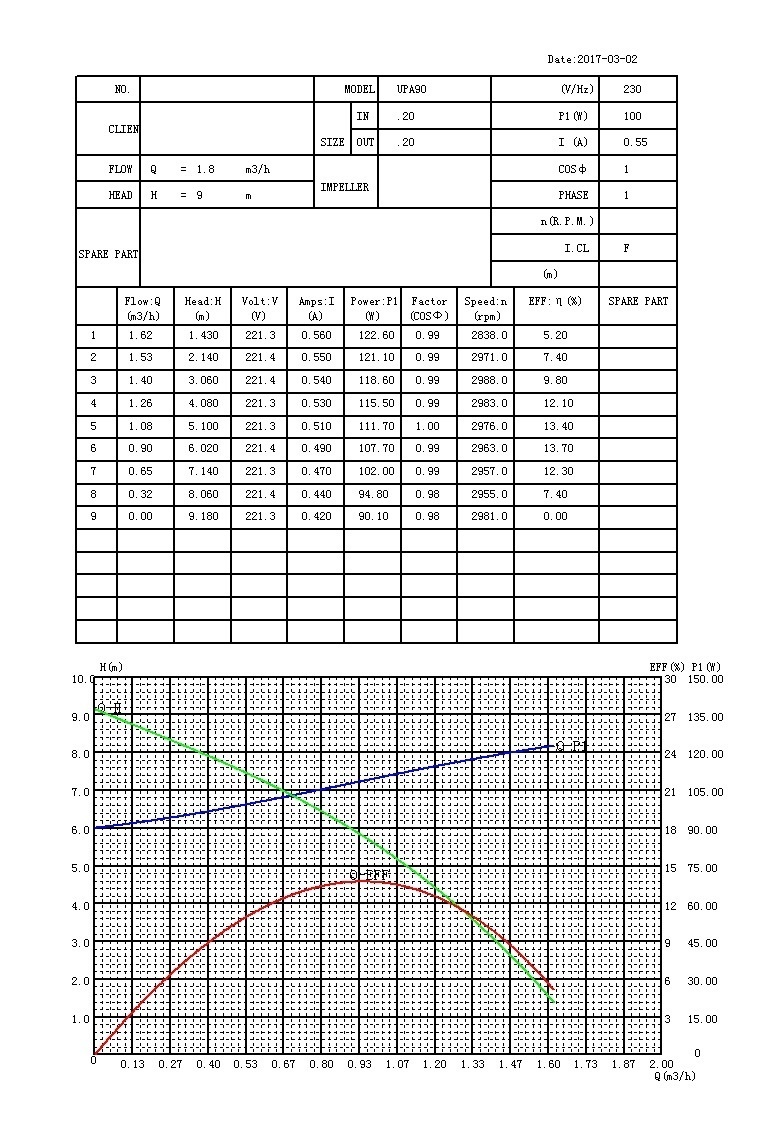 | Débit maximal | 1.8 m3/h (30l/min) |
