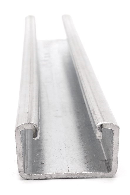 La poutre de montage pleine paroi est en acier galvanisé. Conception robuste. Rail de montage avec profilé en U 41 x 25 ou 41 x 41 mm pour applications horizontales ou verticales. Système de montage universel et complet.