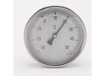- Teploměr je vyroben z nerezové oceli 1.4301 (AISI 304), opatřen hermetickým těsněním, které zabraňuje průniku vlhkosti do pouzdra teploměru.