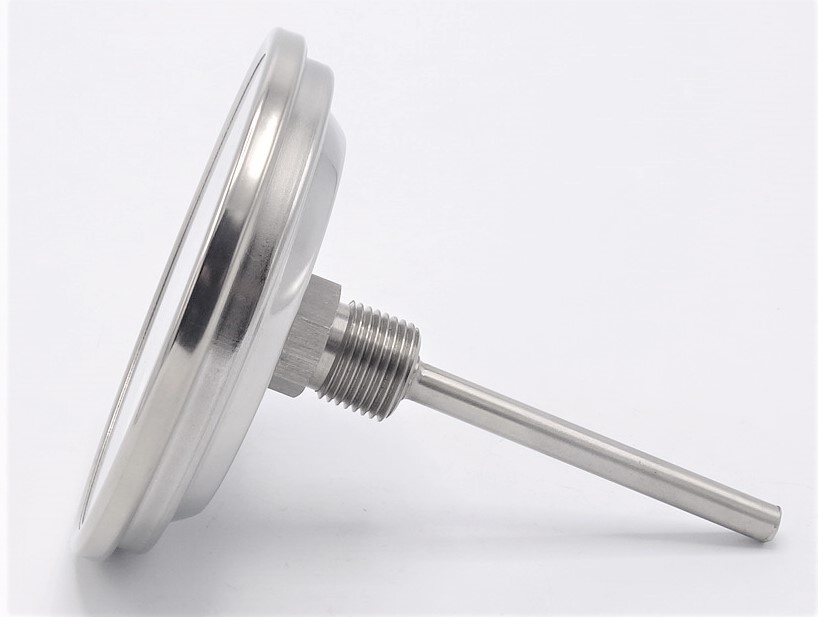 Celonerezový bimetalový teploměr s ponorným dříkem 100 mm, závitový G1/2" BSP