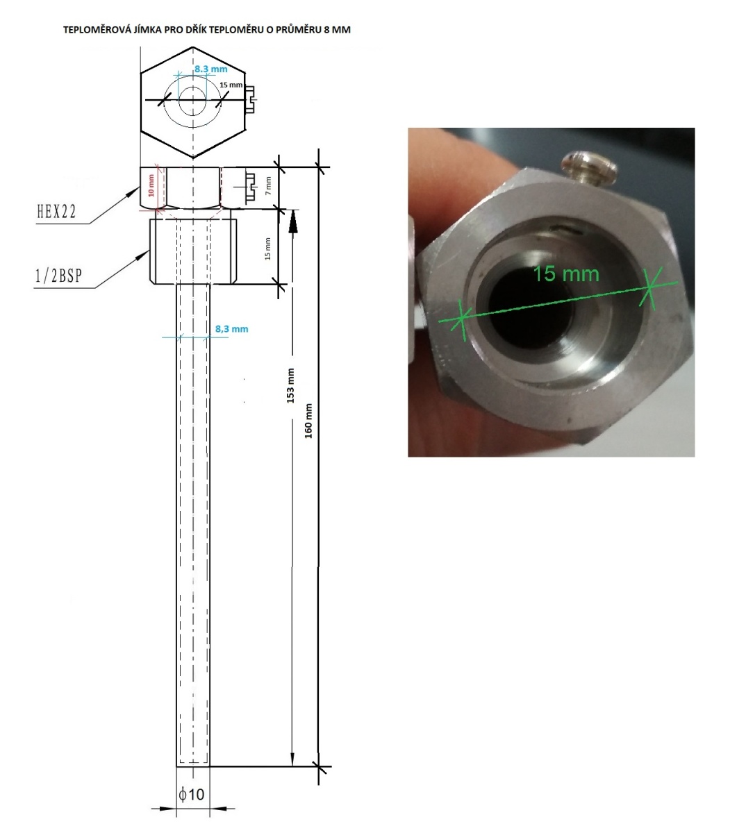 - tl. stěny 0,8 mm, vnitřní průměr 8.3 mm (pro dřík teploměru o průměru 8 mm)