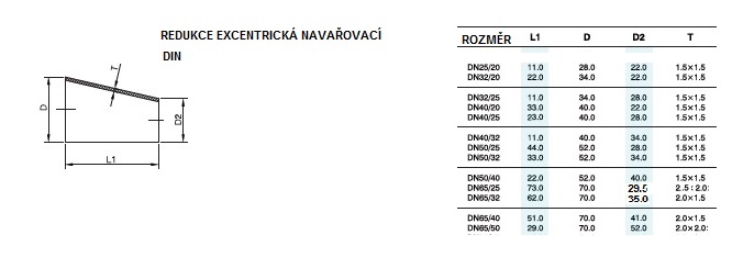 | Type | excentriques, à souder, courtes DN65/50 |
