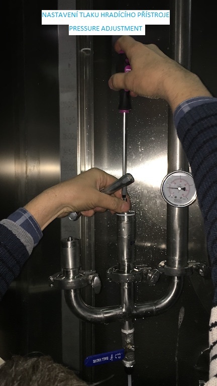 De CK réservoir avec une barrière de valve se déconnecte très facilement à l'aide de colliers de CLAMP. Douille Clamp I.. Le régulateur de pression peut être complètement vers le bas et l'opérateur insère l'ensemble de la odstrojenou sol dans la solution de désinfectant.