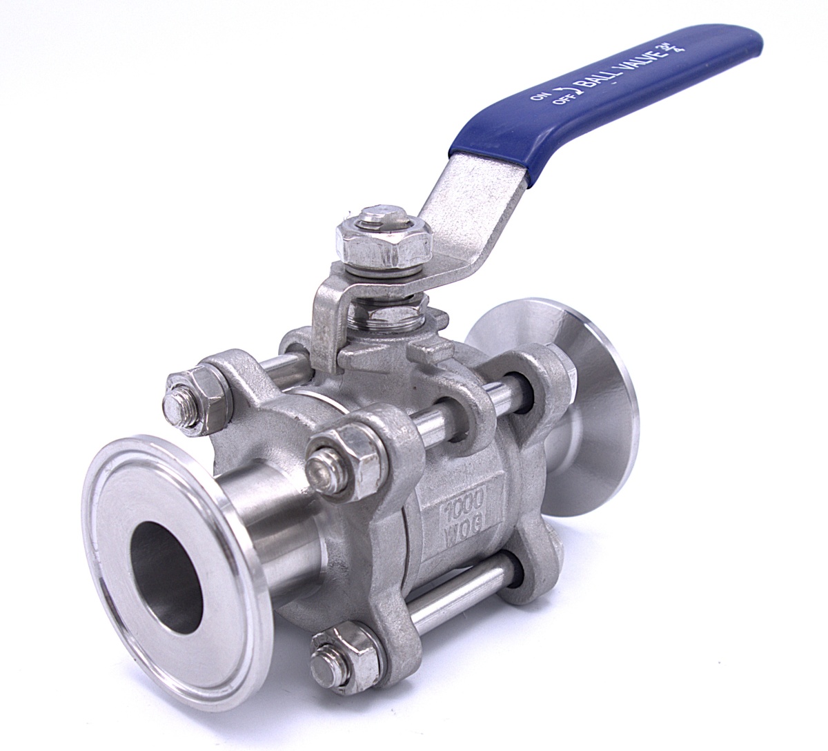 Robinet à boisseau sphérique en acier inoxydable à plein débit, en trois parties, CLAMP