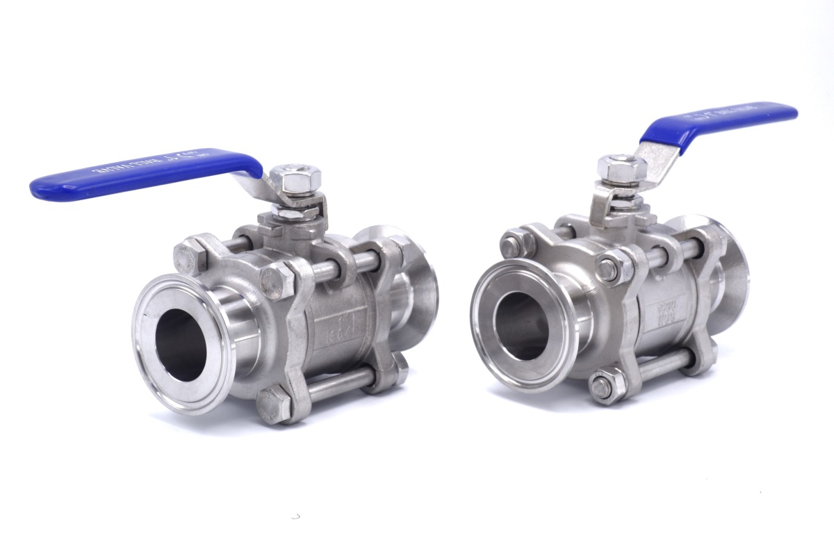 Robinet à boisseau sphérique en acier inoxydable à plein débit, en trois parties, CLAMP