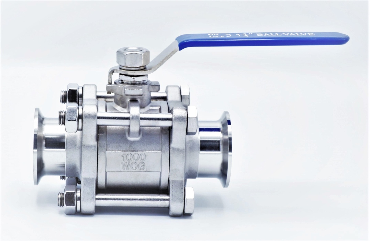 Robinet à boisseau sphérique en acier inoxydable à plein débit, en trois parties, CLAMP
