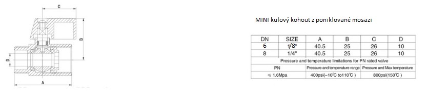 Robinet à boisseau sphérique MINI en laiton à débit réduit, monobloc, fileté