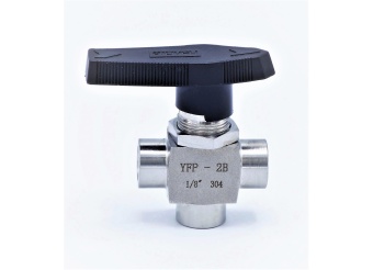 Robinet à tournant sphérique, acier inox, 3 voies, fileté, perçage "T"