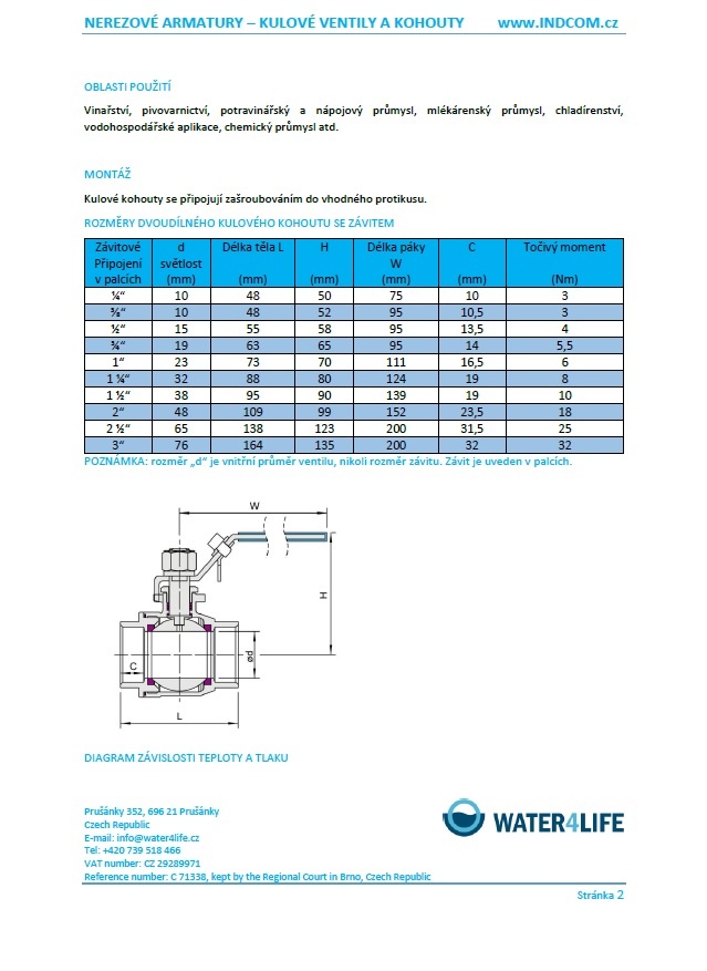 Matériaucorps DIN 1.4301 (AISI 304), selle PTFE, joint de tige PTFE (détaillée de la composition matérielle – voir l’image)
