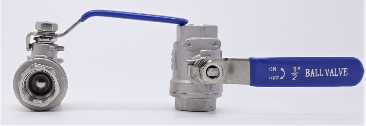 Robinet à tournant sphérique, acier inox avec plein débit, en deux parties, fileté