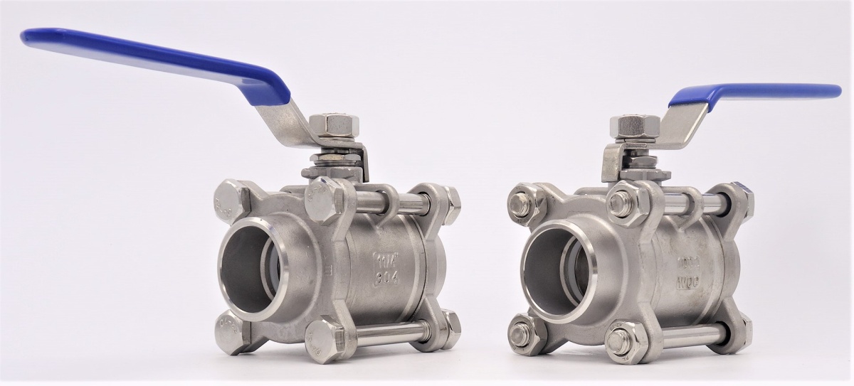 Robinet à tournant sphérique, acier inox avec plein débit, en trois parties, soudé