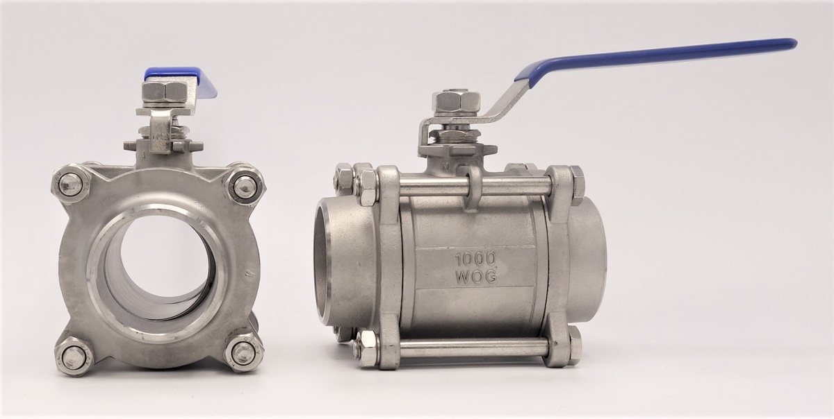 Robinet à tournant sphérique, acier inox avec plein débit, en trois parties, soudé