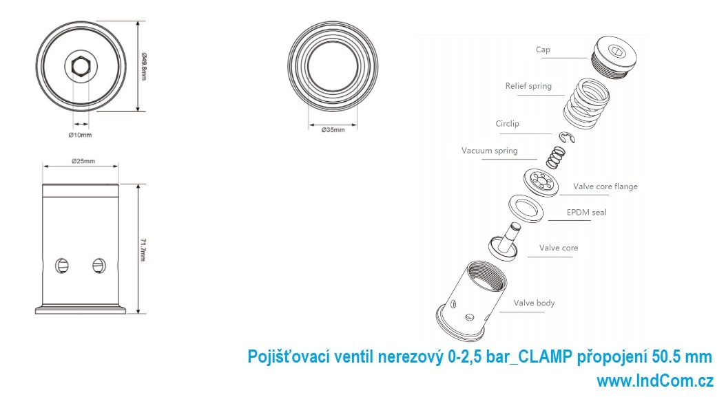 Soupape de sécurité 0-2,5 bar Connexion CLAMP 50,5 mm, acier inoxydable