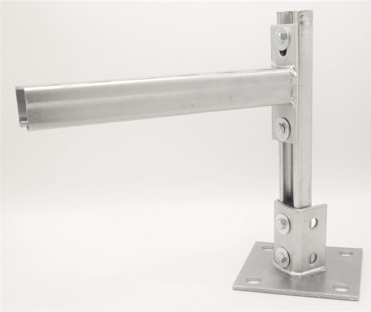Les supports sont en acier galvanisé. Conception robuste. Rail de montage avec profilé en U 41 x 41 mm, soudé sur la plaque d'ancrage pour un montage direct au mur.