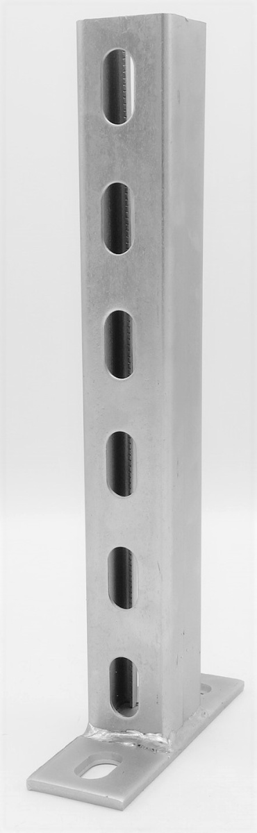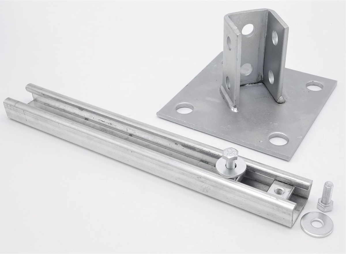 Les supports sont en acier galvanisé. Conception robuste. Rail de montage avec profilé en U 41 x 41 mm, soudé sur la plaque d'ancrage pour un montage direct au mur.
