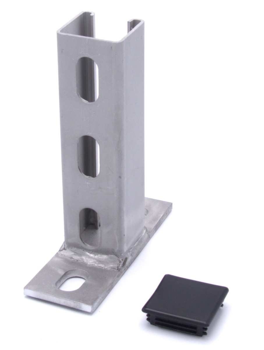 Le support est en acier inoxydable. Conception robuste. Rail de montage avec profilé en U 41 x 41 mm, soudé sur la plaque d'ancrage pour un montage direct au mur.