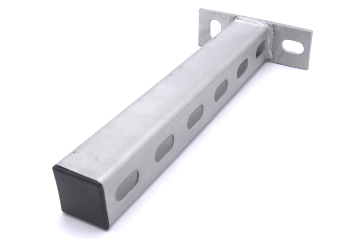 Le support est en acier inoxydable. Conception robuste. Rail de montage avec profilé en U 41 x 41 mm, soudé sur la plaque d'ancrage pour un montage direct au mur.