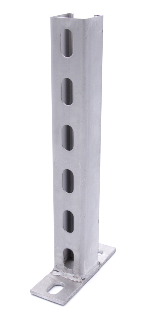 Les supports sont en acier inoxydable. Rail de montage avec profilé en U 41 x 41 mm, soudé sur la plaque d'ancrage pour un montage direct au mur.