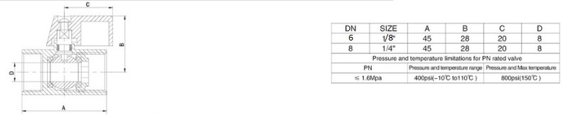 Vanne à boisseau sphérique MINI inox à débit réduit, monobloc, filetée, en acier inoxydable AISI304