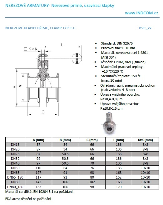 | Type | clamp connexion C-C, DN80 (CLAMP collier 106 mm) |