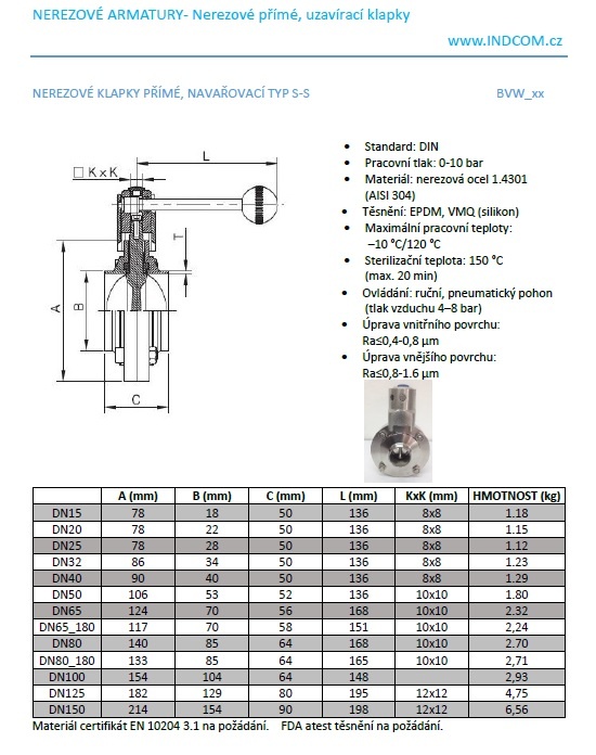 Vannes papillon soudées (S-S type), en inox