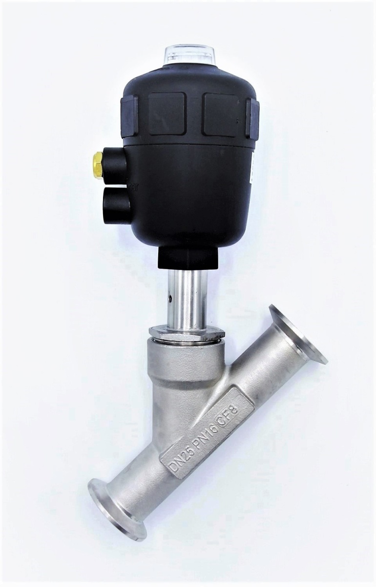 Vanne pneumatique à siège incliné - 45°, Clamp type
