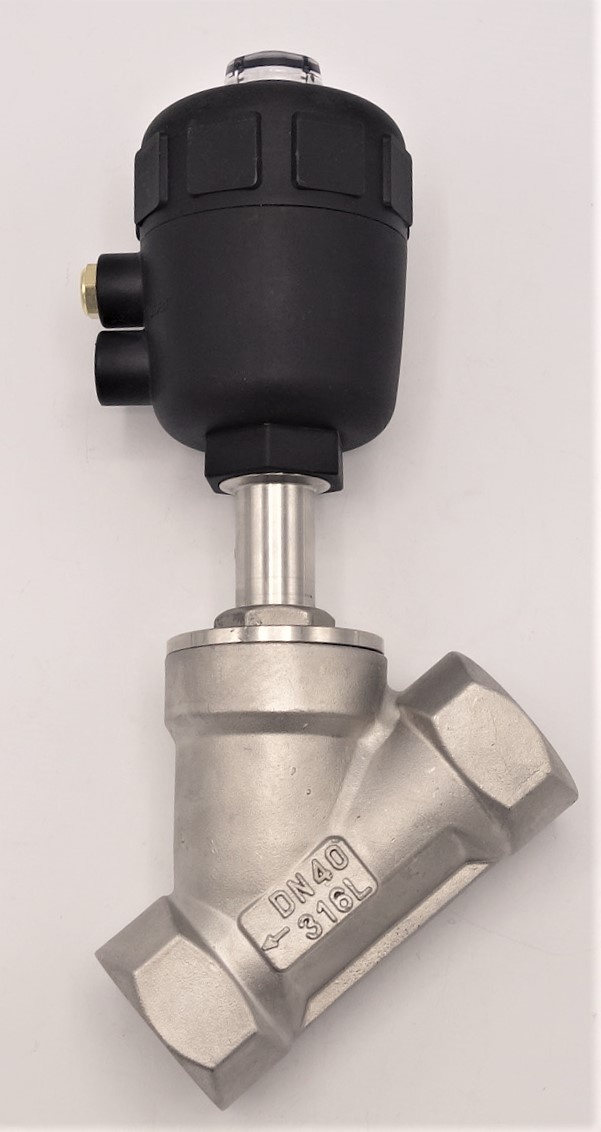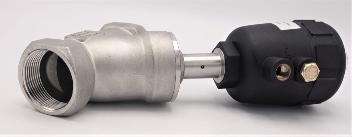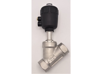 Vanne pneumatique avec le siège incliné-45°, G-filetage, Matériau du joint PTFE