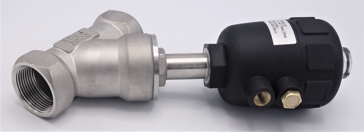 Vanne pneumatique avec le siège incliné-45°, G-filetage, Matériau du joint PTFE