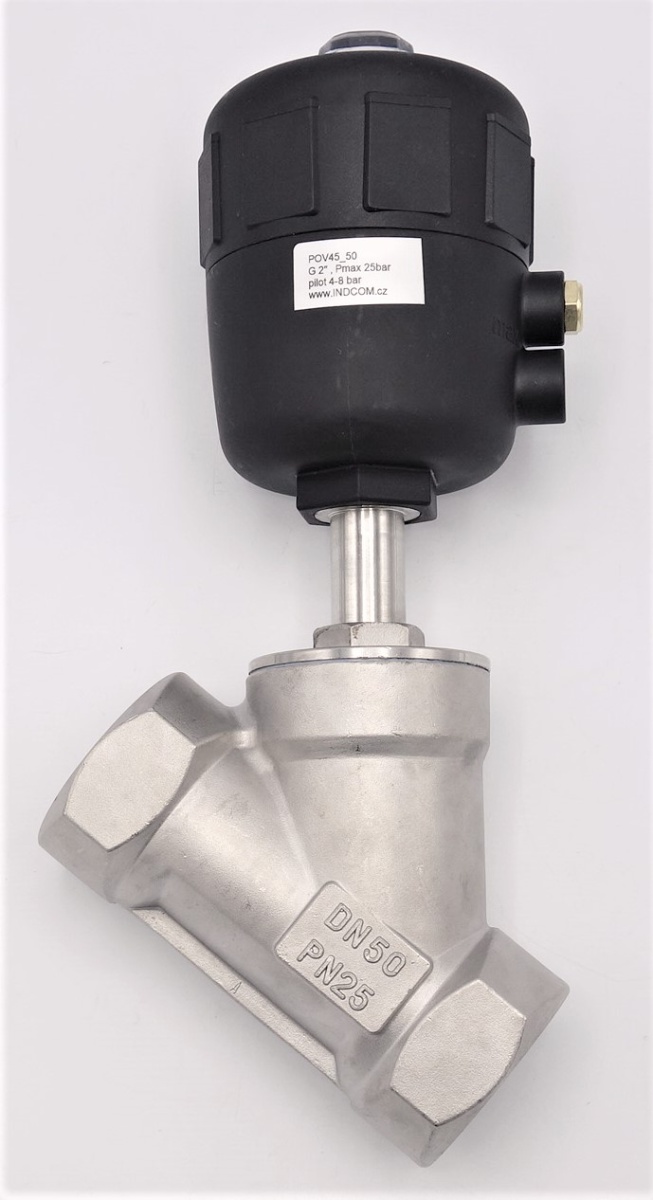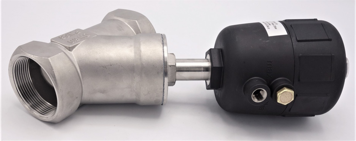 Vanne pneumatique avec le siège incliné-45°, G-filetage, Matériau du joint PTFE