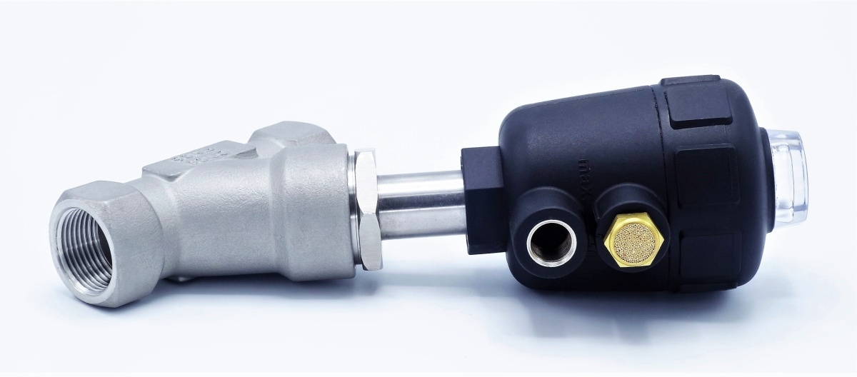 Vanne pneumatique avec le siège incliné-45°, G-filetage, Matériau du joint PTFE